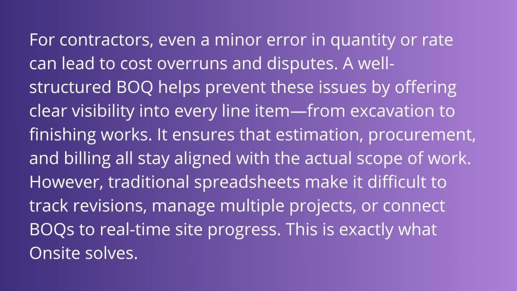 2. How does Onsite’s BOQ Software help contractors?