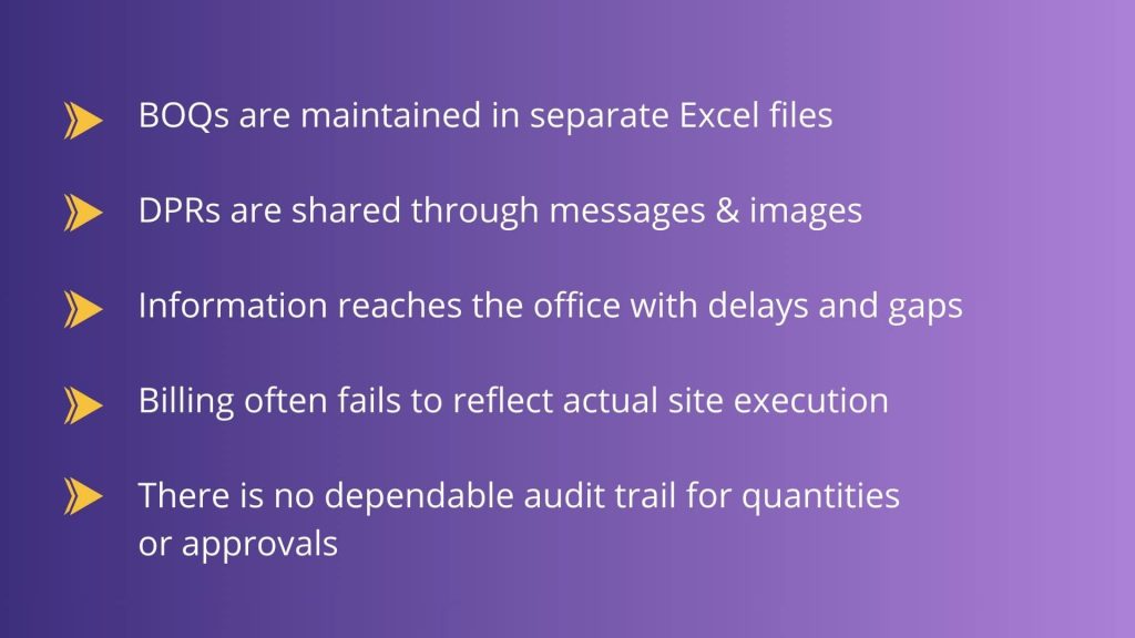 - Billing: We use the amounts recorded through DPRs to create running account invoices. This keeps billing linked to the work that was really done.