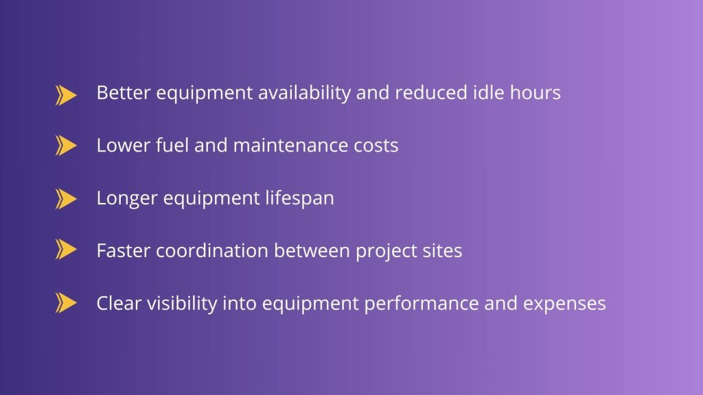 It is a digital tool that helps contractors monitor, track, and maintain their construction equipment. It records usage, fuel consumption, maintenance schedules, and cost reports, giving full visibility into equipment operations.
