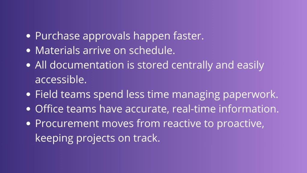 In construction, procurement is about more than just making orders. When requests go through a lot of different spreadsheets, emails, or messaging apps, they often cause problems. Orders sit unprocessed, deliveries are missed, and invoicing takes longer than they should. Work has slowed down and budgets have changed by the time approvals come through. The main cause of the problem is bad coordination. Procurement links the office to the site. If there isn’t a single system, the whole process falls apart, which causes delays and extra expenditures.