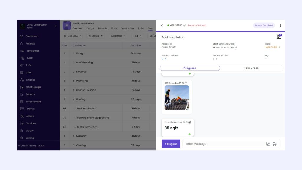 Need confirmation from your site supervisor? With Onsite, you can view task-wise updates that include photos, voice notes, and written progress- all in one place. Just tap on a task and open the chat to see everything related to that activity. It’s easy to verify work and generate accurate, genuine DPRs backed by real site data. With DPR in construction software, no more guesswork or follow-up calls.