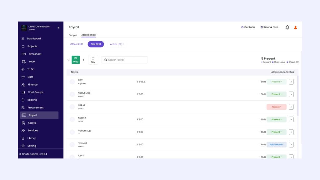 Onsite adds credibility to your site updates with built-in geo-tagging and time stamps. You can immediately know where your supervisor is by Geo-Tagging. You can also generate the attendance report of the labor or labor contractor on a daily basis. You get a reliable record of when and where each activity took place. This is especially valuable for verifying whether tasks were completed on time and on location.
